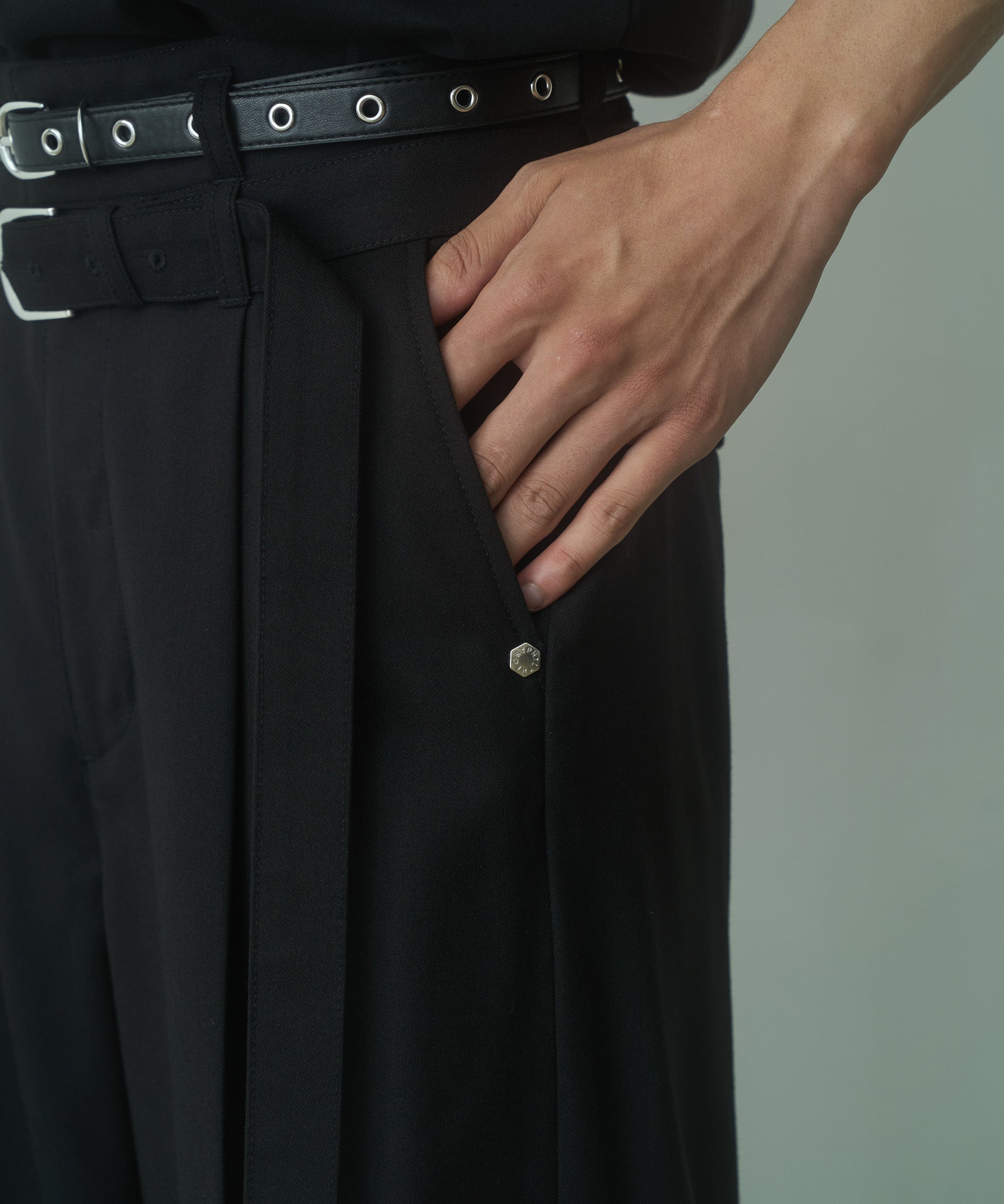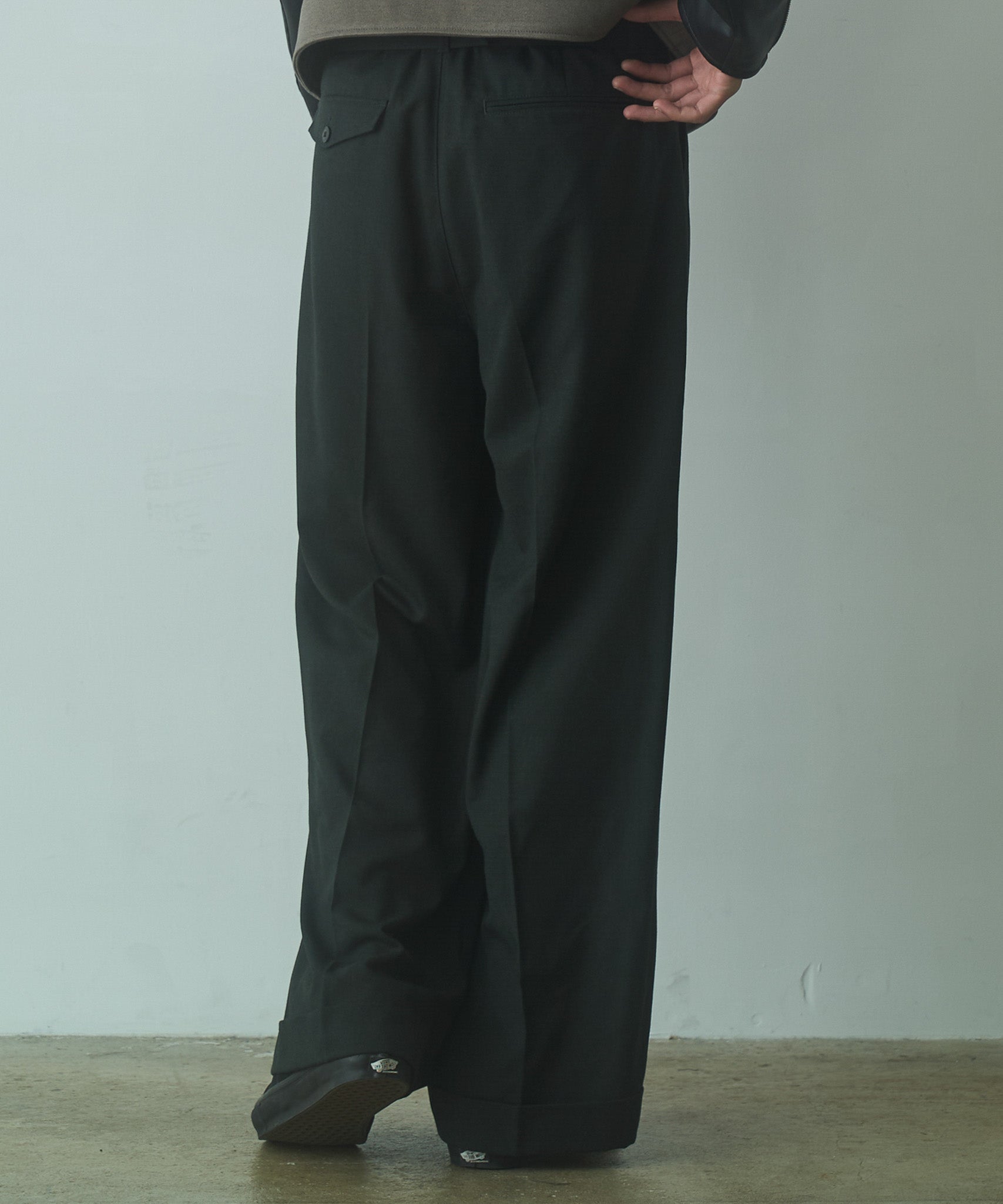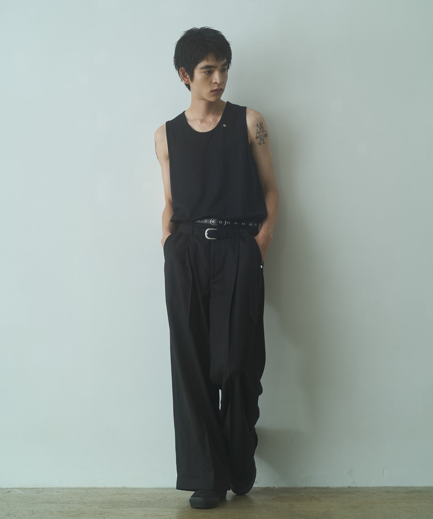 かなり長めに設定した、存在感抜群のデザインスラックスです。