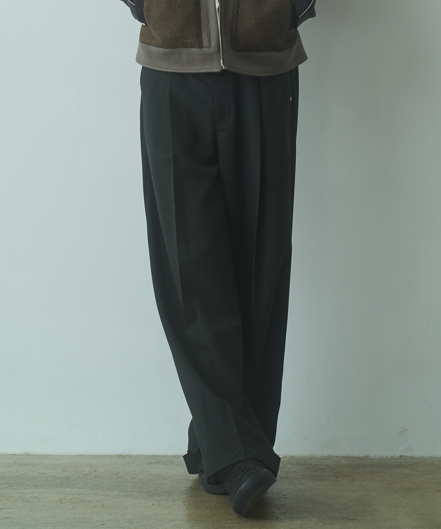 ドレープ性とハリ感のバランスにこだわったスラックス地を使用