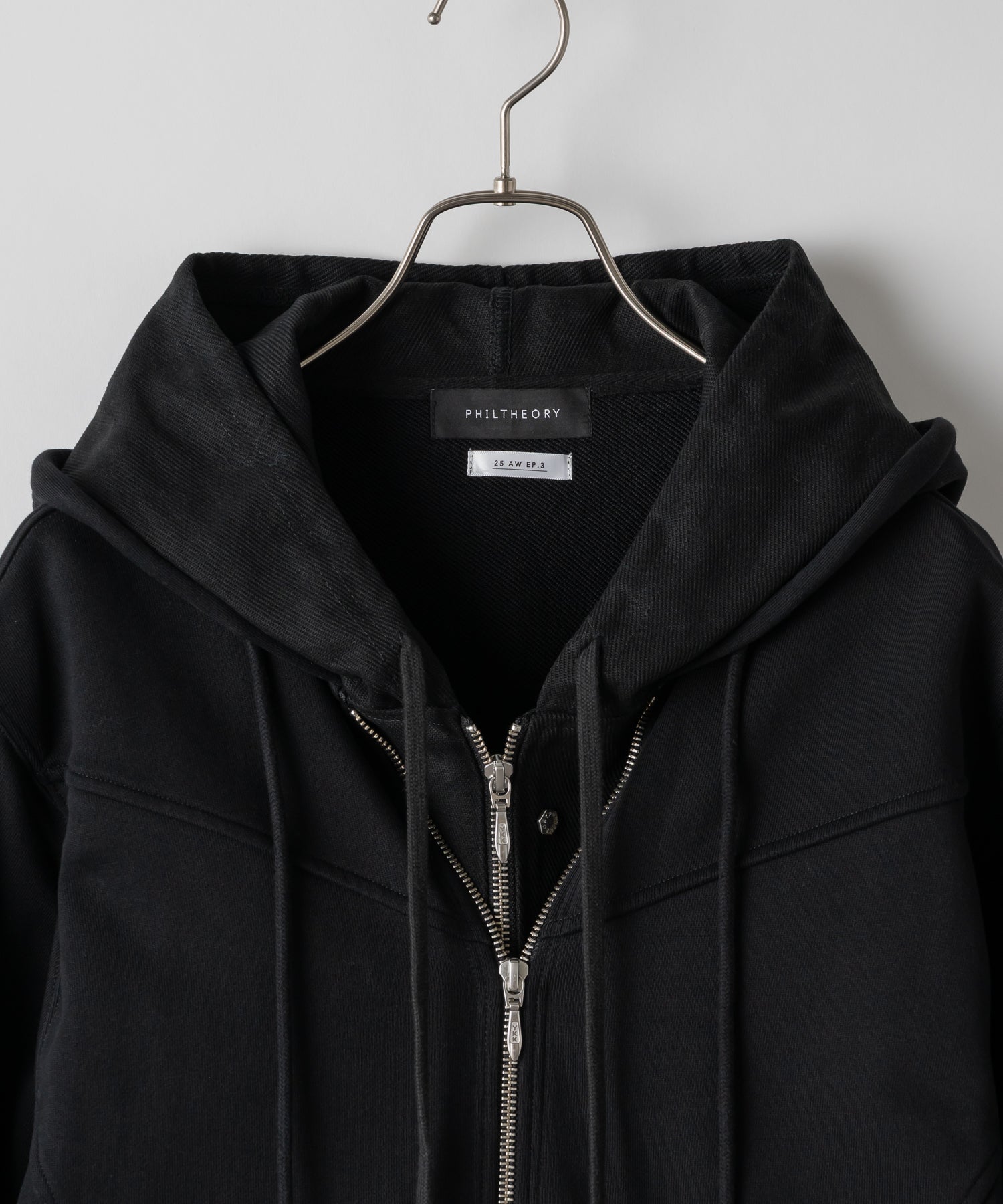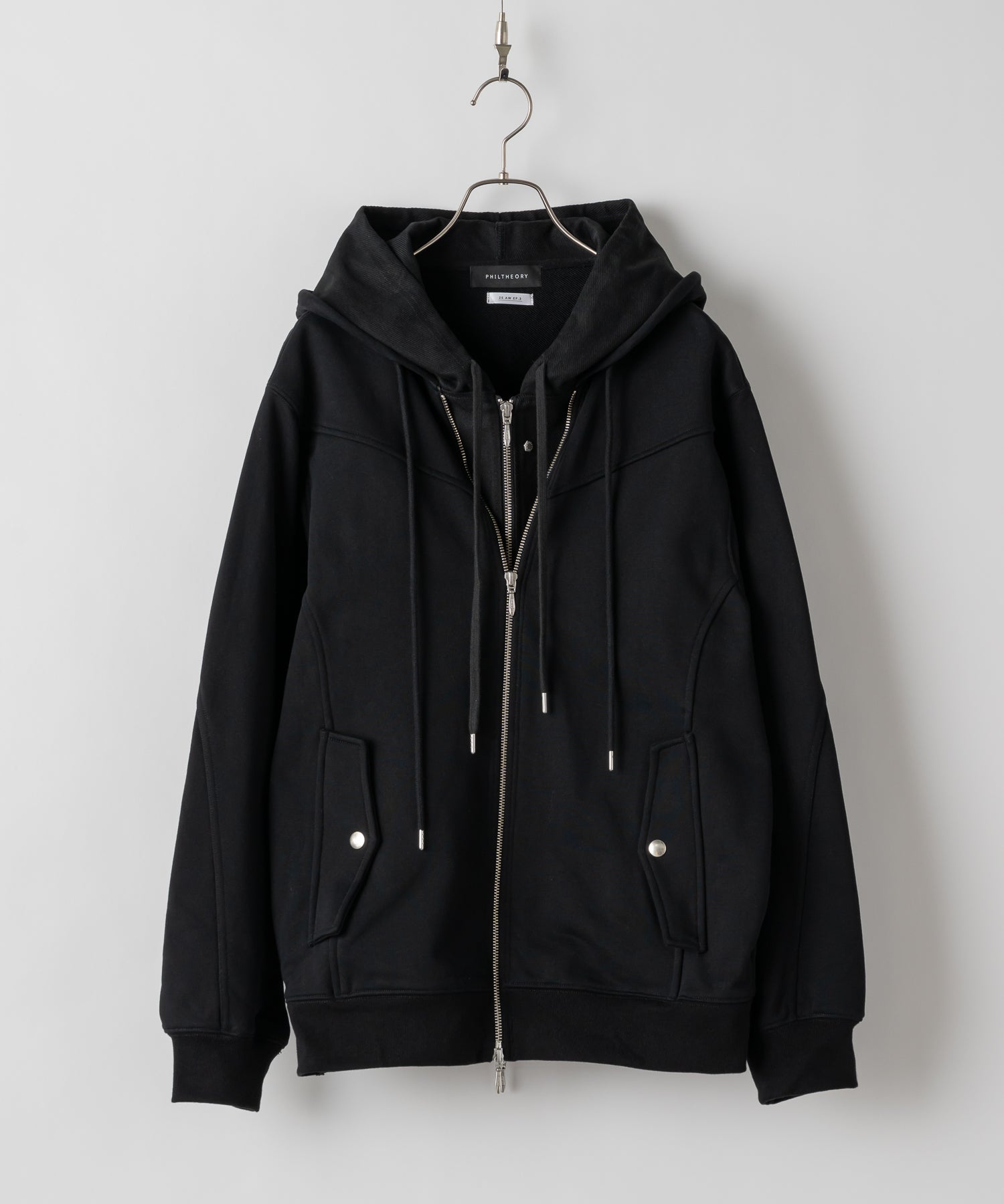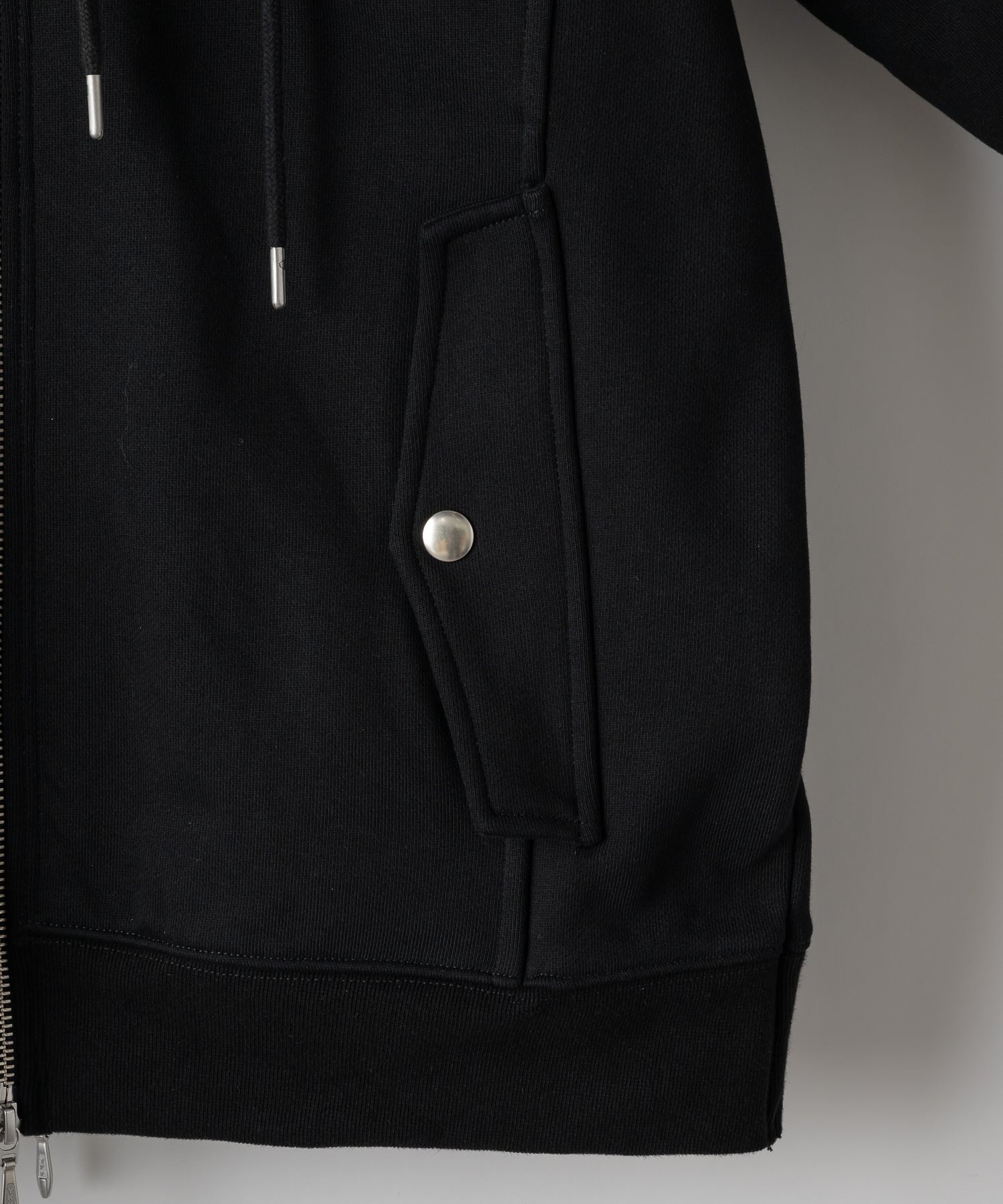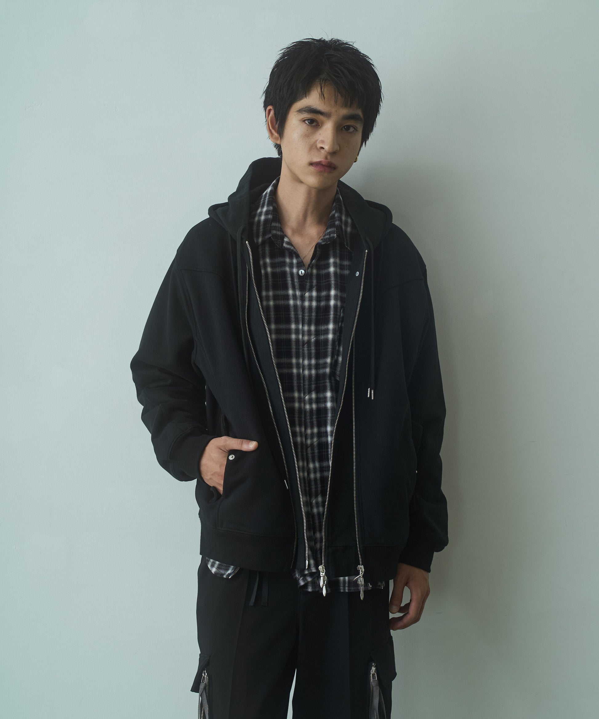 フロントのジップの留め方はライダース風を始め幅広い見せ方が可能です。